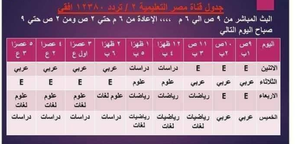 صور جدول مواعيد قناة مصر التعليمية 2020 وبرنامج مدرسة علي الهواء موقع بذاكر التعليمي